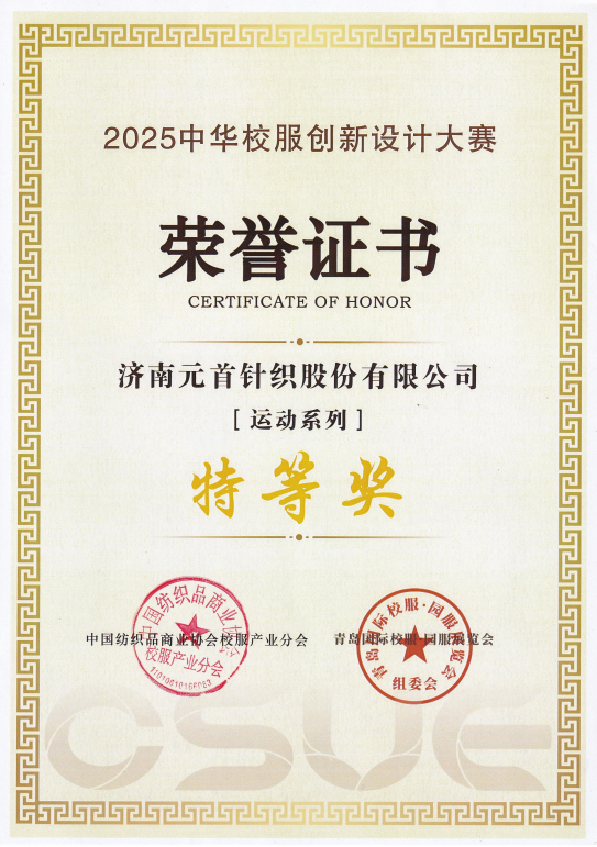 元首集團權屬針織公司榮獲2025中華(國家級)校服創(chuàng)新設計大賽最佳校服面料設計獎、運動系列特等獎