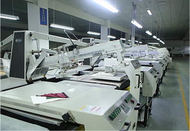 設備先進,種類齊全。有寬幅自動鋪料,自動裁剪機2臺,適合圓筒產品生產的日本MACUS裁剪機5臺,日本HAC自動裁剪機4臺,適合不同寬窄幅度驗料的驗料機6臺。半自動橢圓印花機1臺,田島繡花機4臺。飛馬、重機、兄弟、捷克等知名品牌的包縫機、平縫機、雙針機、四針六線、四針八線、壓條機、訂扣機、鎖眼機、打結機、腰頭車、花樣機等各種縫紉機1500余臺。
